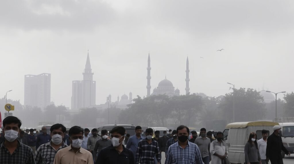 یہ آلودگی بھارتی دیوالی کی آتش بازی، کھیتوں کی جلائی، اور مقامی گاڑیوں/کارخانوں کے دھوئیں سے بڑھ رہی ہے، جہاں مشرقی ہوائیں (4-7 کلومیٹر فی گھنٹہ) آلودگی کو لاہور لے آ رہی ہیں۔ سینئر وزیر مریم اورنگزیب نے کہا کہ “وزیراعلیٰ مریم نواز کی قیادت میں انسداد سموگ اقدامات مؤثر ثابت ہوئے، گزشتہ سال اکتوبر میں لاک ڈاؤن کی ضرورت پڑی تھی، مگر آج صورتحال بہتر ہے، نہ انڈسٹری بند کی نہ سکول—ملٹی سیکٹرل اپروچ سے کسان، صنعت کار، اور شہری مل کر لڑیں گے”۔ طبی ماہرین نے ماسک، گھروں میں رہنے، ایئر پیوریفائر، اور باہر نہ نکلنے کی ہدایت دی، کیونکہ سانس کی تکلیف، آنکھوں میں جلن، اور امراض کا خطرہ بڑھ گیا ہے۔