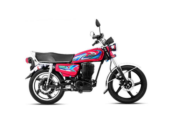 United Motorcycle New Models Prices in Pakistan 2025 United US 100Fuel Average 45.0 KM/LTransmission 4-speedFuel Tank Capacity 9 LEngine 100 ccPKR 108,500 United US 70Fuel Average 50.0 KM/LTransmission 4-speedFuel Tank Capacity 9 LEngine 70 ccPKR 111,000 United US 125Fuel Average 30.0 KM/LTransmission 4-speedFuel Tank Capacity 9 LEngine 125 ccPKR 166,500 United Electric SmartRange 110 kmCharging time 5.0 HoursFuel Type ElectricElectric Motor Power 1000.0 WPKR 248,000 United US Scooty 100Fuel Average 40.0 KM/LTransmission 0-speedFuel Tank Capacity 5.5 LEngine 100 ccPKR 273,500 United EV RevoltRange 75 kmCharging time 5.0 HoursFuel Type ElectricElectric Motor Power 1500.0 WPKR 285,500 United Electric SharpRange 100 kmCharging time 5.0 HoursFuel Type ElectricElectric Motor Power 1000.0 WPKR 340,000 United EV BulletRange 90 kmCharging time 5.0 HoursFuel Type ElectricElectric Motor Power 2000.0 WPKR 347,500
